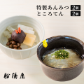 あんみつ2個・ところてん2個のセット。 ※あんみつと白玉あんみつに使用しているあんこの材料や製法を変更することがございますので予めご了承ください。 |
