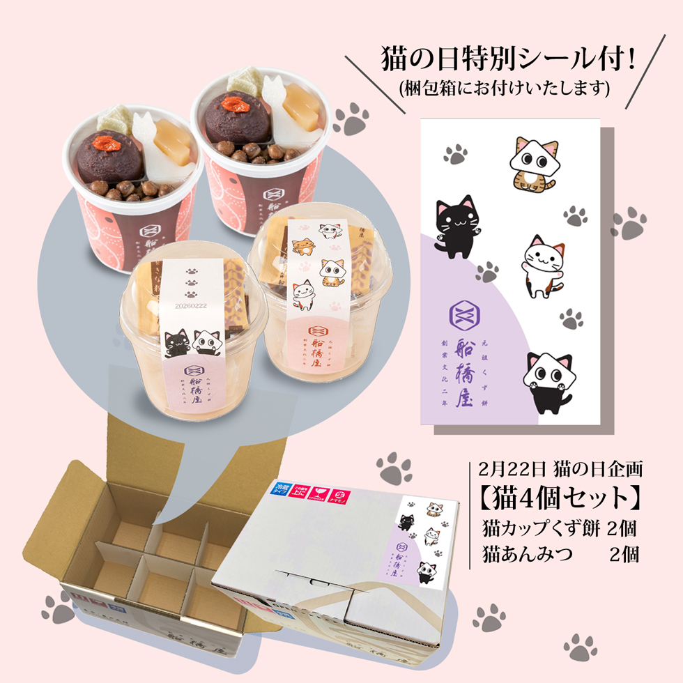 | 猫の日のあんみつとくず餅を購入しました どちらも美味しく、猫の形のくず餅が 入っていて、可愛かったです |