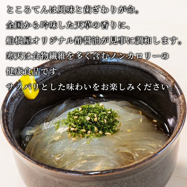 ところてんは風味と歯ざわりが命。全国から吟味した天草の香りに、当店オリジナル酢醤油が見事に調和します。